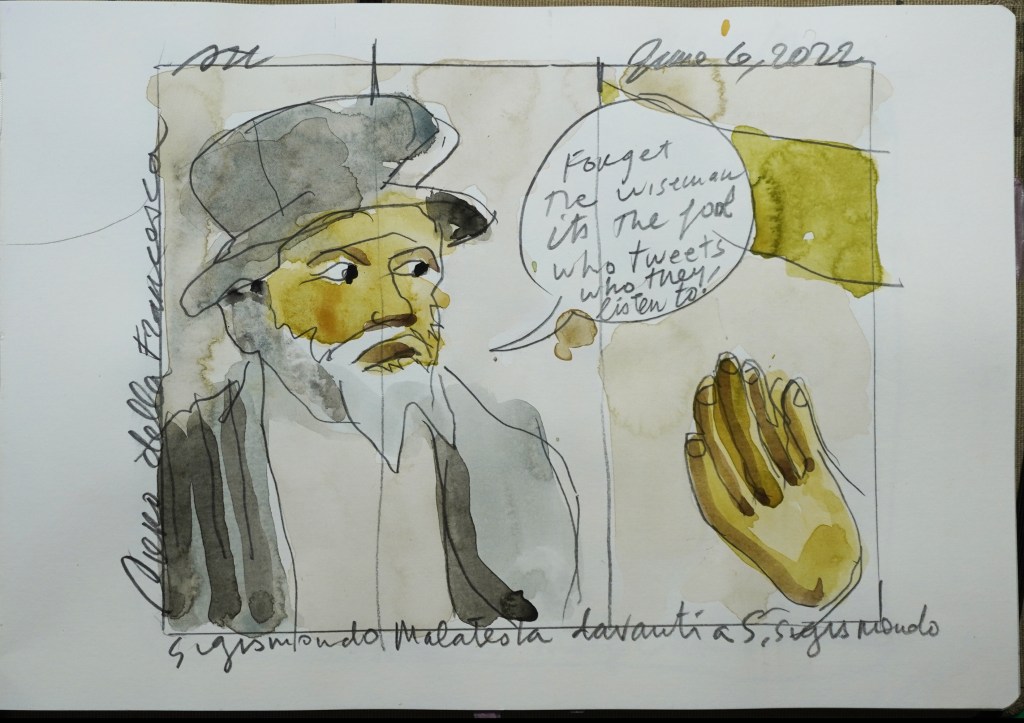 The Brute Resistance Series. “Forget the wiseman, its the fool who tweets who they listen to.” Drawing after Piero della Francesca. PtL.