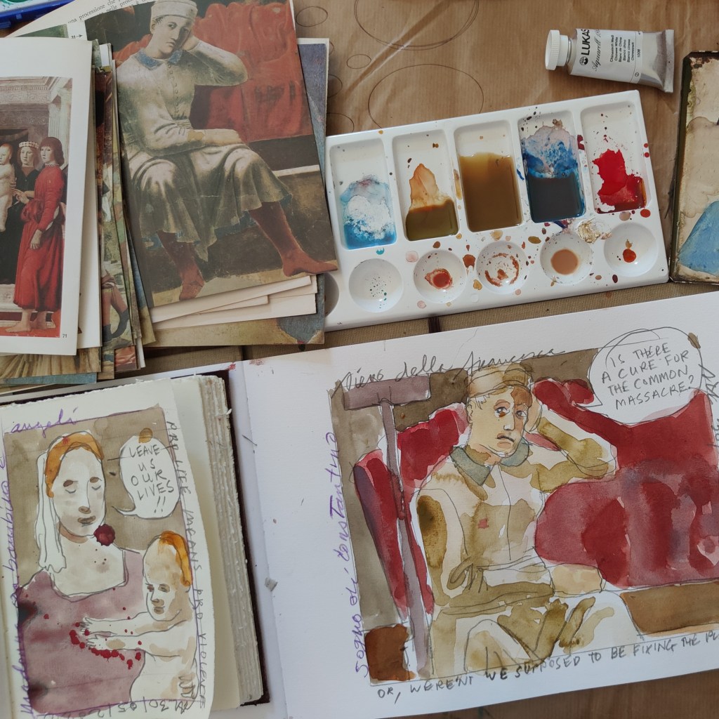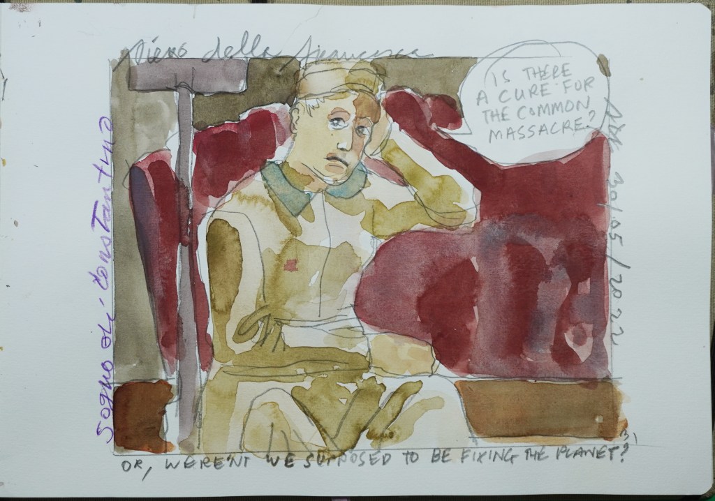 The Brute Resistance Series. “Is there a cure for the common massacre? or weren’t we supposed to be fixing the planet. Constantine’s dream. Drawing after Piero della Francesca. PtL.
