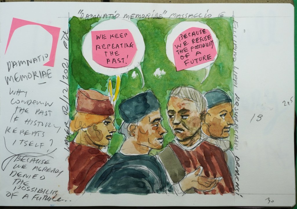 The Brute Resistance Series: “we keep repeating the past!” – “Because we refuse the possibility of a future.” Drawing after Filippino Lippi. PtL.