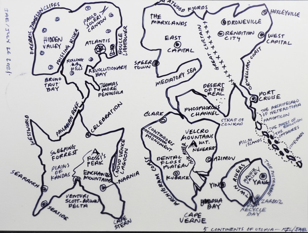 Diagram: “The Lost Continents of Utopia.” Map depicts the location of the continents. 2009 PtL.